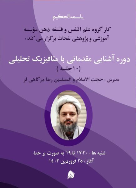 استاد رضا درگاهی فر , دوره آشنایی , علم النفس و فلسفه ذهن , مؤسسه آموزشی پژوهشی نفحات , متافیزیک تحلیلی